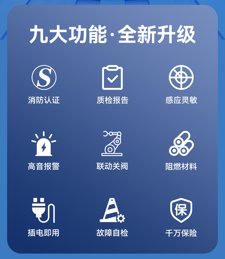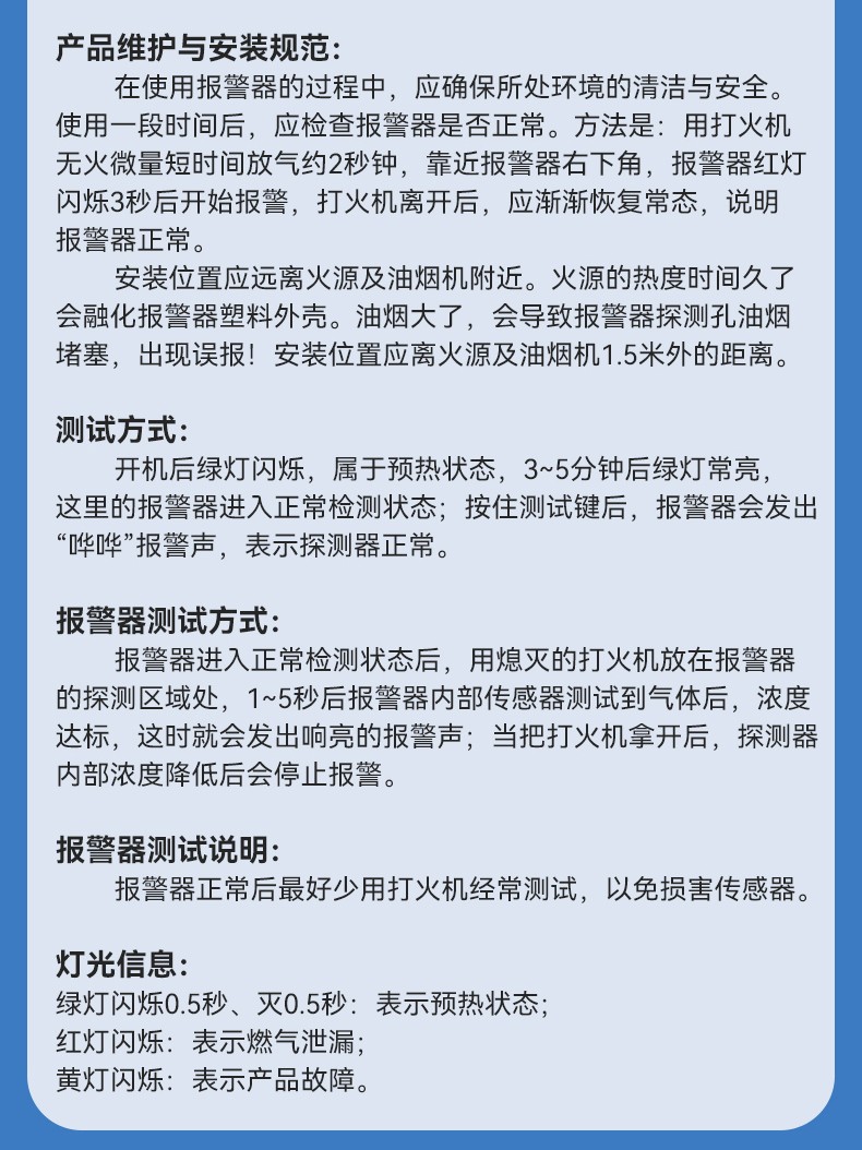燃氣報警器 (型號PA-219) 產(chǎn)品規(guī)格 功能特點 資料下載 燃氣報警器 (型號PA-219)1、多種氣體檢測2、90分貝高音報警3、探測靈敏4、故障質(zhì)檢5、聯(lián)動切斷燃氣6、中國平安保險7. 可連接機械手閥適用場景:適用于家庭廚房、酒店廚房、食堂、商場等場所