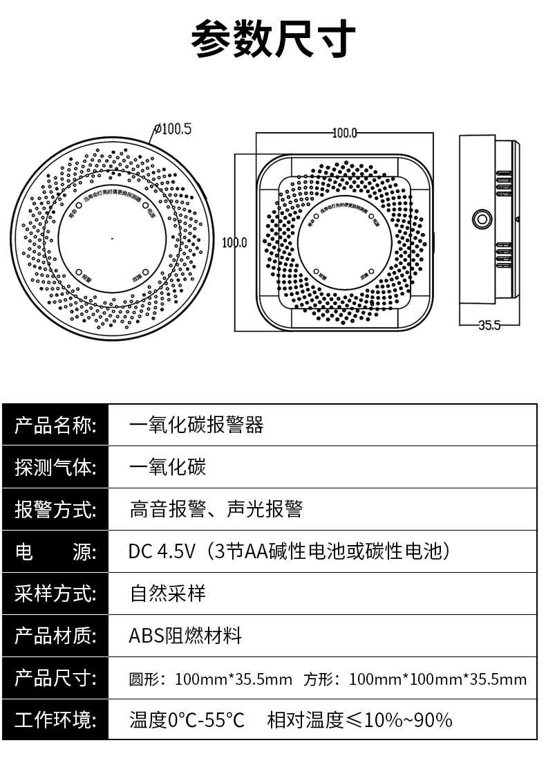 一氧化碳報警器(型號PA-009) 產(chǎn)品規(guī)格 功能特點 資料下載 一氧化碳報警器(型號PA-009)1.檢測氣體、燒煤、燒柴、燒炭、蜂窩媒、露營封閉環(huán)境、封閉車內(nèi)2.85分貝報警音量3..LED液晶屏幕顯示4.故障自檢: 綠燈(正常)、黃燈 (故障、需要檢修) 紅燈(氣體濃度超標(biāo))5.報警方式:蜂鳴聲提示 6. 產(chǎn)品保險:1000萬承險7. ABS阻燃材質(zhì)適用場景:適用于廚房、浴室、起居室、火鍋包廂、飯?zhí)玫乳L時間空氣不流通的場所安裝一氧化碳報警探測器