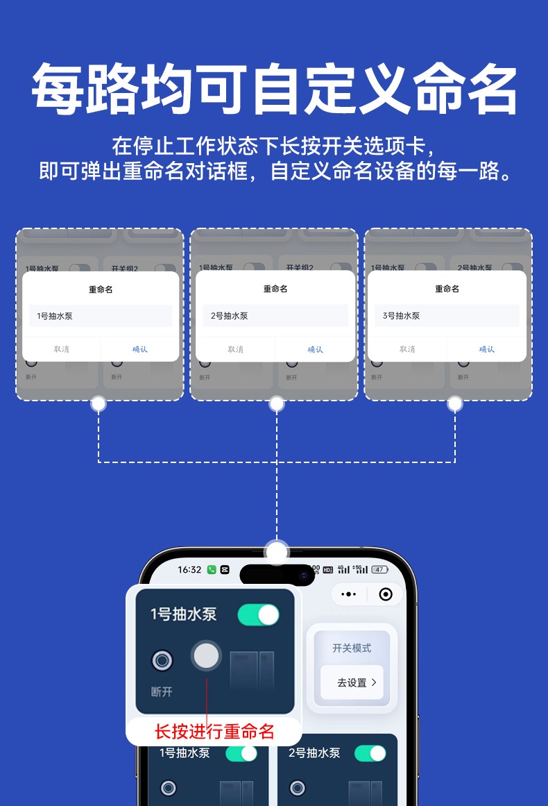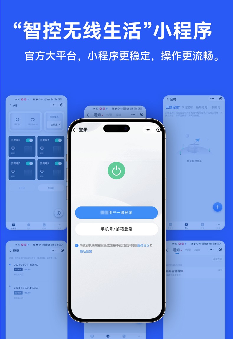 電機正反轉(zhuǎn)遙控開關(guān) 產(chǎn)品規(guī)格 功能特點 資料下載 電機正反轉(zhuǎn)遙控開關(guān)智控?zé)o限生活小程序操作系統(tǒng)三種模式切換:點動/自鎖/互鎖控制方式:手動、遙控、手機斷電報警多人管理控制同步使用設(shè)備啟動停止?fàn)顟B(tài)反饋每路自定義命名手機不限制距離輸入電壓:280v/380v通用應(yīng)用場景:起吊設(shè)備 ,大鵬卷簾機、升降設(shè)備、正反轉(zhuǎn)電機,工業(yè)信號控制, 投影幕布等